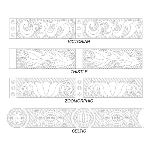 Designs available are Celtic, Thistle, Victorian and Zoomorphic.