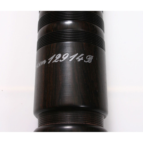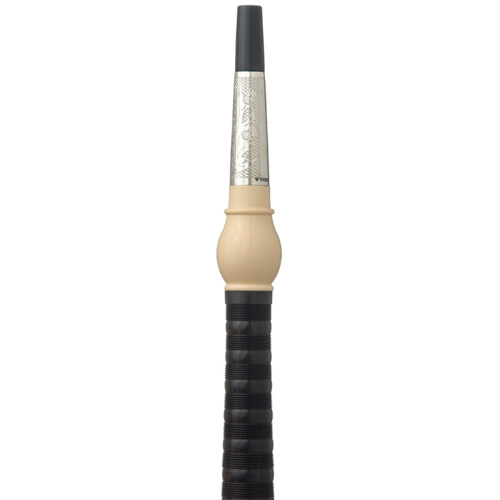 Machines engraved Sterling silver ring caps, ferrules, slides and mouthpiece slide with Imitation Ivory projecting mounts, hemp retainers and ring cap bushes.