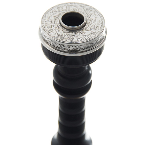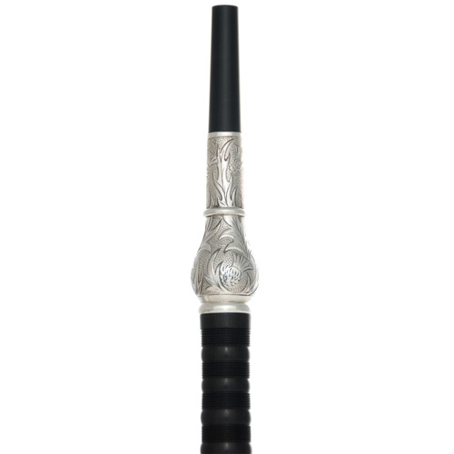 Hand Engraved sterling silver ring caps, ferrules, slides, projecting mounts. This set is complete with a solid silver mouthpiece and Blackwood bushes.